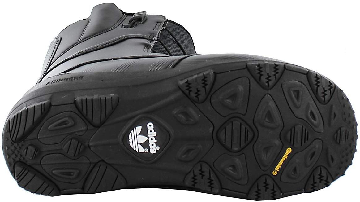 Особенность ботинок в том, что стрэп легко можно снять, классический прорезиненный носок, сама конструкция шарнирная и обеспечивает надежную фиксацию ноги. Сноубордические ботинки полностью повторяют класическую модель Superstar, это заметно не только про трем полоскам, но и по носку, который как бы переходит в подошву. Это так же добавляет комфорта и повышает защиту обладателя ботинок от непогоды и мокрого снега.